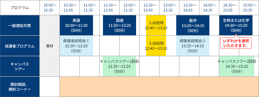 - 参加するプログラム(科目)の時間帯からお越しください。