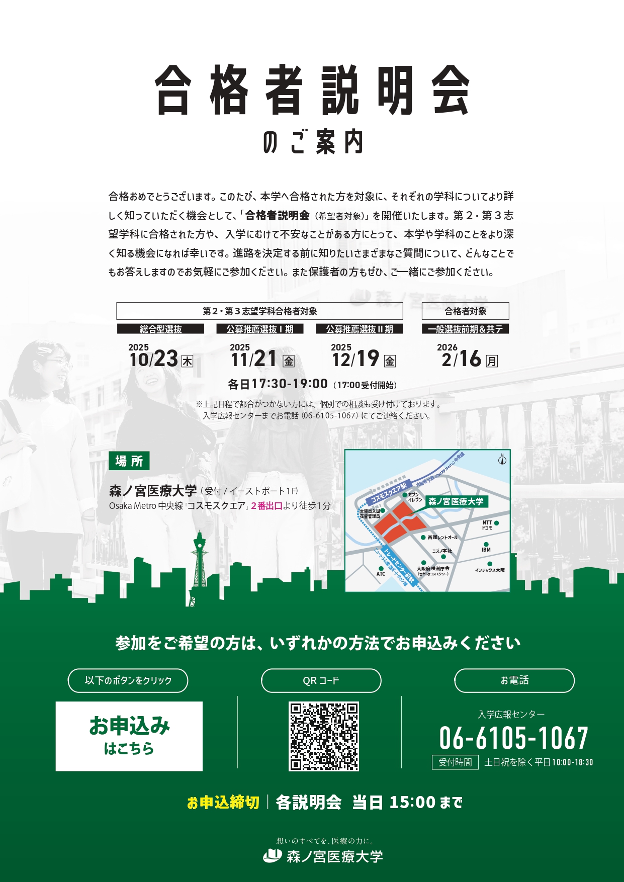 この説明会は、入学手続き前あるいは引き続き第1志望に向けチャレンジする前に、合格された学科のことをより深く知る機会になることを目的に開催します。