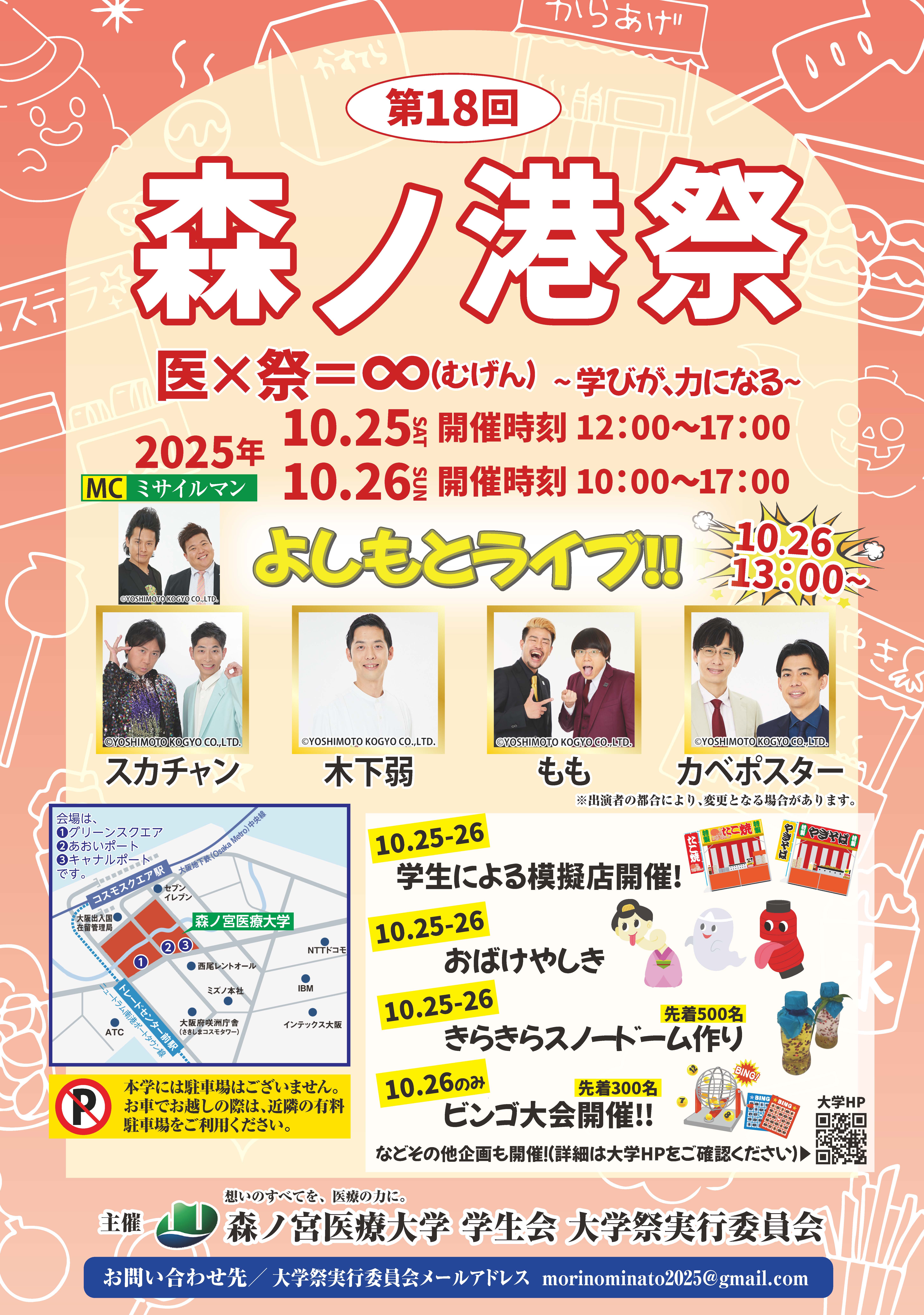 10月25日(土)、26(日)に実施する第18回森ノ港祭(大学祭)の実施企画が決定しました!